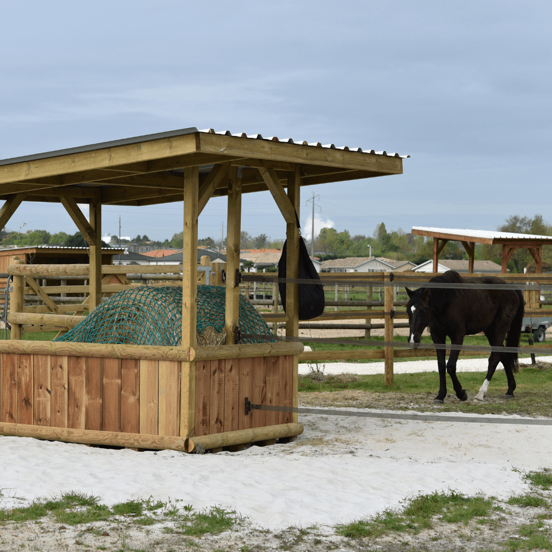 Bien que chaque cheval soit en paddock individuel, il bénéficie de contacts sociaux quotidiens : il peut voir, sentir et toucher ses voisins, ce qui maintient son équilibre émotionnel tout en évitant les risques liés aux regroupements inadaptés.
